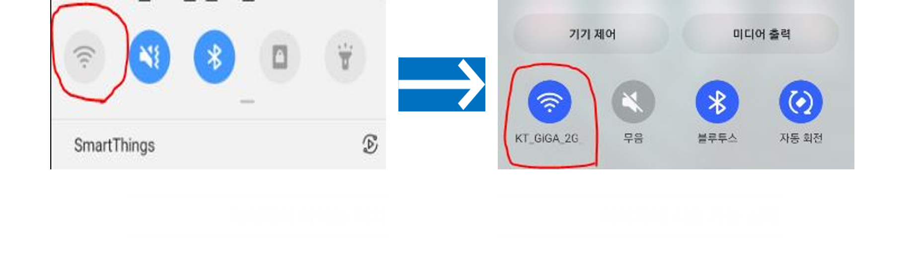 # 와이파이 아이콘이 파란색으로 변했으면 와이파이 사용 가능한 상태입니다.
