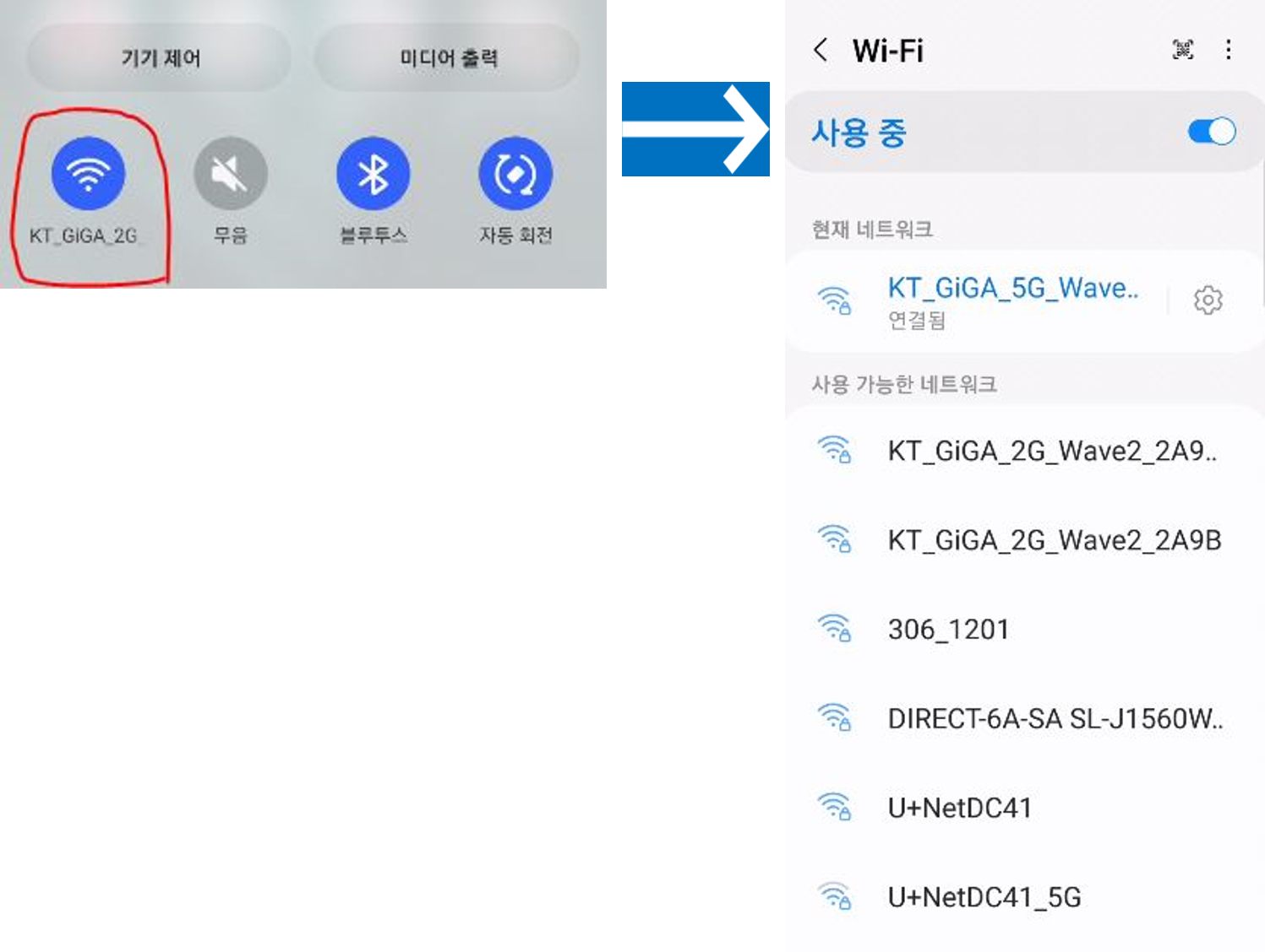 # 와이파이 아이콘을 길게 누르면 와이파이 목록화면으로 이동한다.