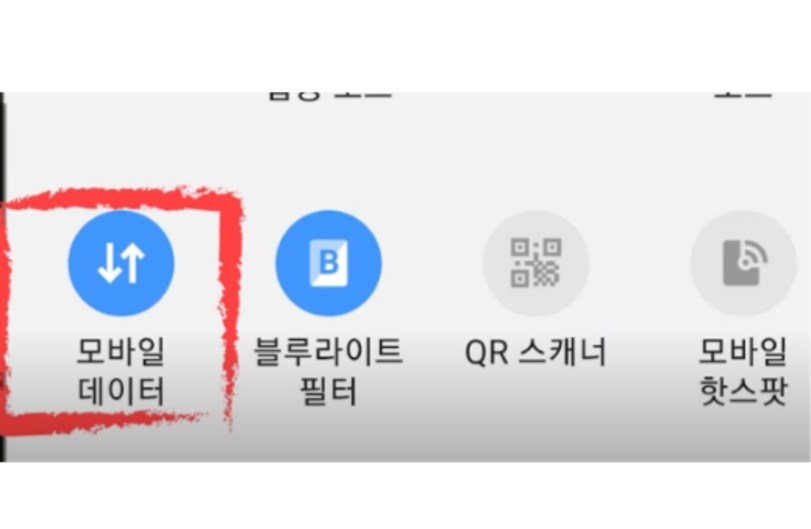 1. 상단바 메뉴 - 비행기모드 / 모바일데이터
