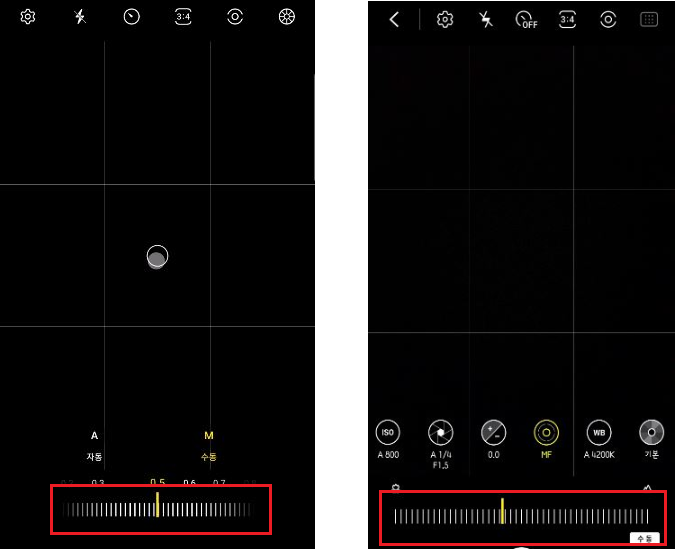 우리는 MF 수동모드를 사용하기 위해 위 그림의 빨간표시 부분을 터치합니다.