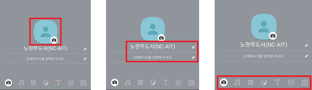 멀티프로필 만들기에서 위 첫번째 그림 표시부분을 터치해서 프로필 사진을 앨범에서 원하는 사진으로 바꿀 수 있습니다.