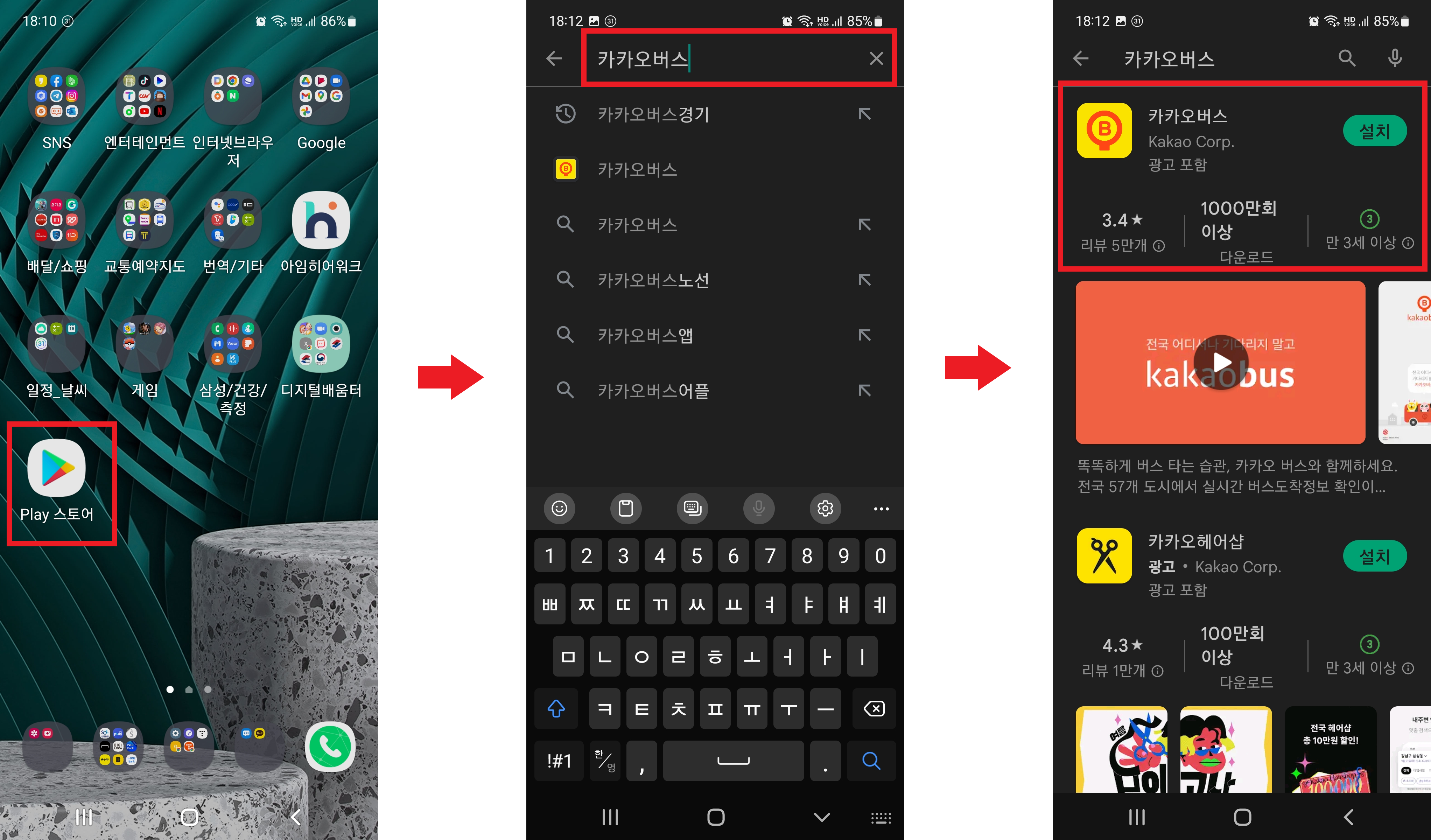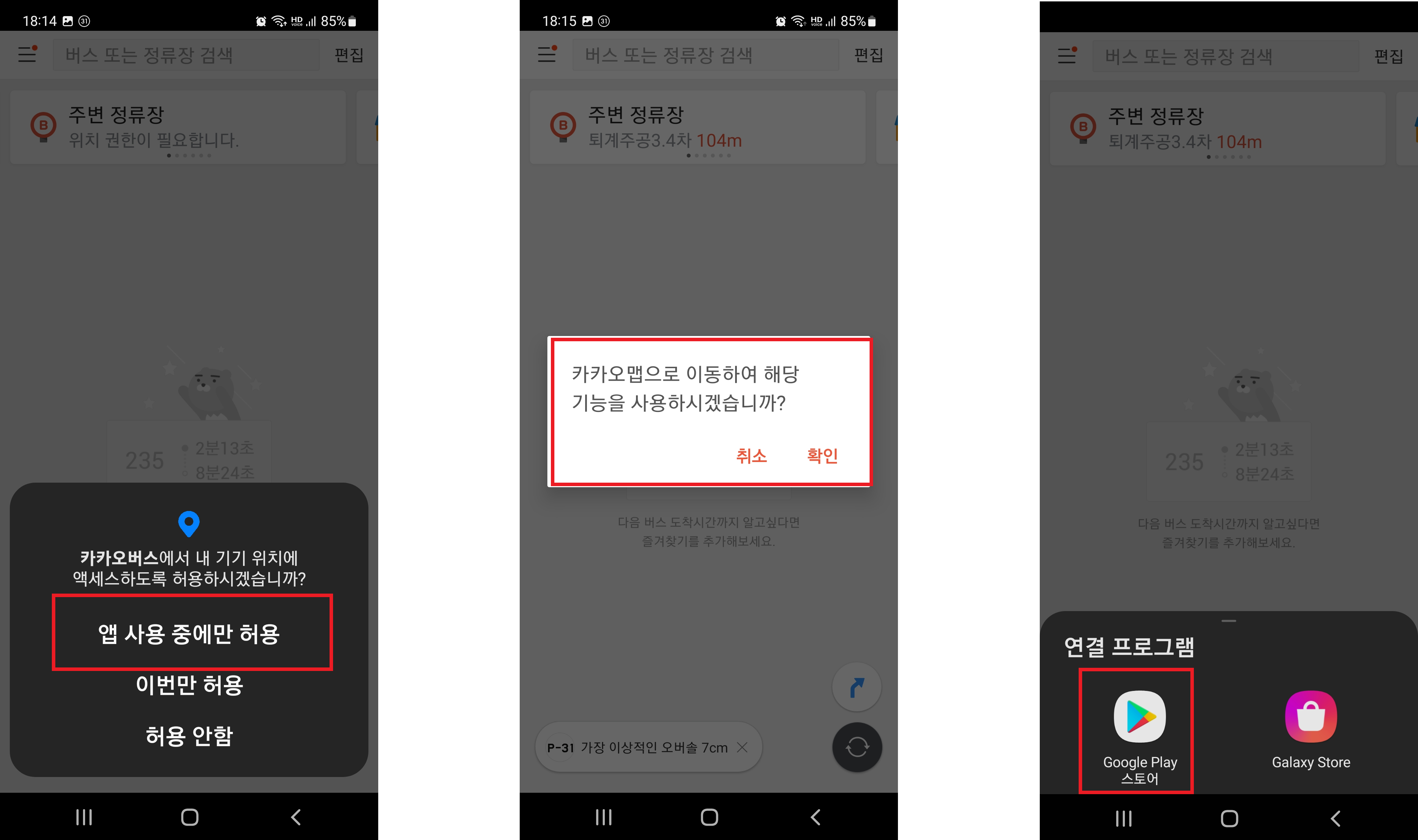 이로서 카카오버스 및 카카오맵의 다운로드 및 설치가 마무리되고 카카오버스앱을 실행할 준비가 완료되었습니다.