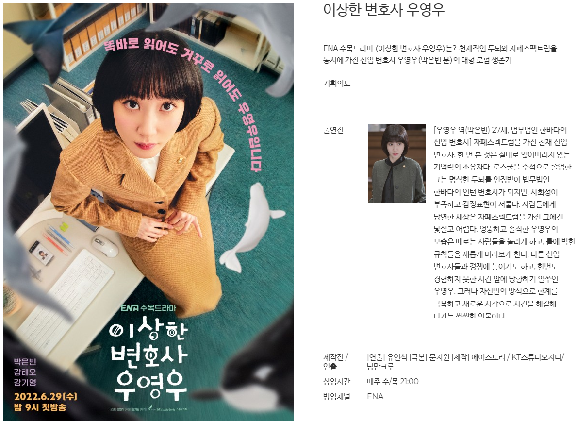 이렇게 인기리에 방영 중인 ENA 드라마 ‘이상한 변호사 우영우’가 네이버 웹툰으로 정식 연재가 시작되었습니다.