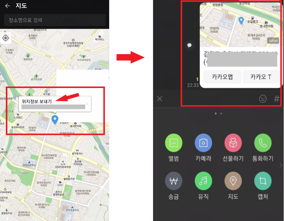카카오톡 채팅방 - 지도(나의 위치) 전송하기